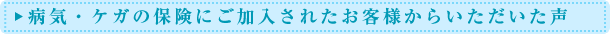 「病気・ケガの保険」以外のお客様の声も悩んでいたこと別にまとめてあります。